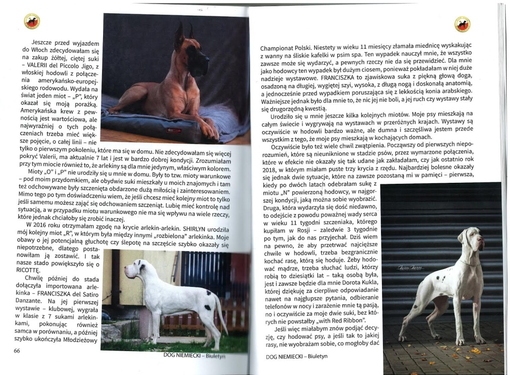 Polish Great Dane Club asked me to write article about the beginning of my breeding for the Bulletin, which they publish twice a year. It was pleasure to take part in it, and I hope it will be nice for you to read it to know more about us. I translated it into English: