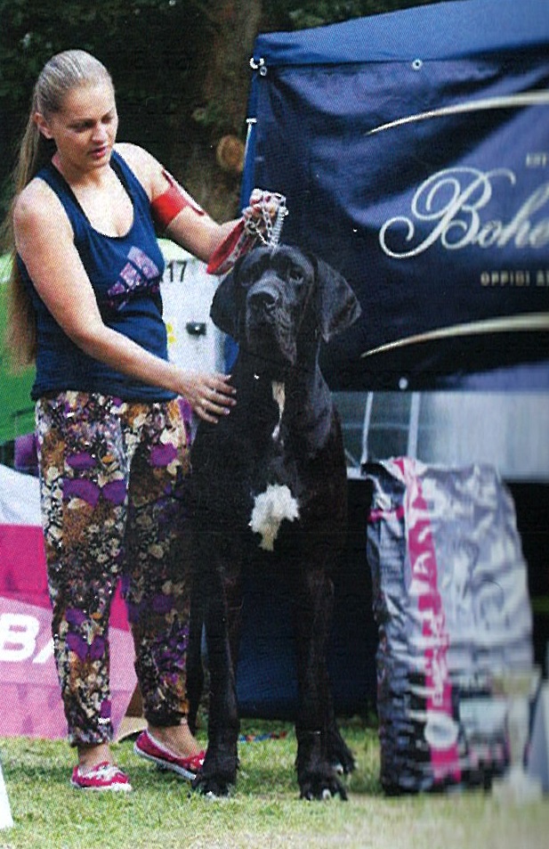 I stopped breeding dogs for a few years. In the meantime I moved to Italy with the Shirlyn. We were attending dog shows and I was getting myself familiar with Italian kennels. I came back to Poland and I changed my flat in Warsaw for a house in the countryside. I decided to bring up two litters. I bred SHIRLYN with TILO del Garroferal – a black dog with Spanish pedigree, using frozen semen. It was very stressful, I won’t lie – back in those days the method wasn’t very popular, it was treated skeptically. I went to another dog with URSULA. I saw him in the Italian kennel – dell’Alto Feudo. It was HAMILTON de la Vigne du Grand Danoise – he had never taken part in any shows. At the time I realized that prize-winning parents aren’t always the guarantors for show quality puppies. I realized that not every dog is suitable for every bitch. In order to achieve success, not only you have to rely on the knowledge about the ancestors, lines and connections. It’s the intuition. I kept NUTELLA with Red Ribbon and OREO with Red Ribbon from those litters.